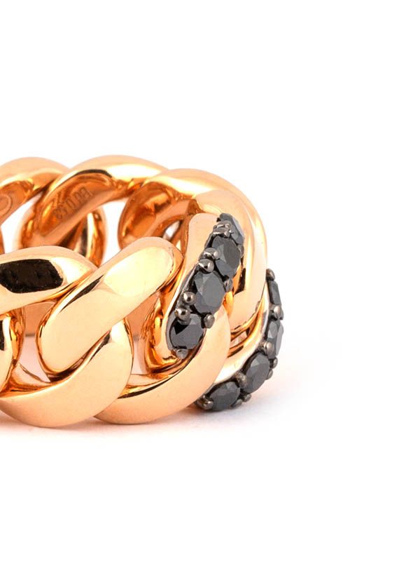Gioiello firmato Crivelli. Anello groumette in oro rosa 18kt con diamanti neri. Anello fantasia così chiamato perché si caratterizza per il proprio design e per i materiali che interagiscono tra loro. Questo è realizzato in oro rosa 18kt e diamanti neri taglio brillante. Il numero delle pietre varia in base alla proporzione a alla misura. Gioiello realizzato in Italia. Per qualsiasi necessità o richiesta particolare, o per prenotare un appuntamento in negozio per valutare il prodotto di persona, non esitate a contattarci, siamo a vostra disposizione.