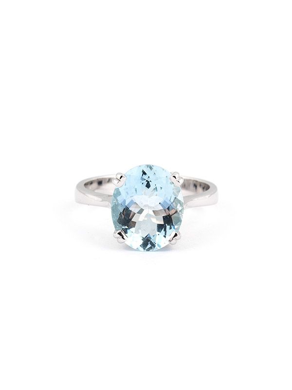 Anello in oro bianco 18kt con acqua marina taglio ovale. Misura 15,5.