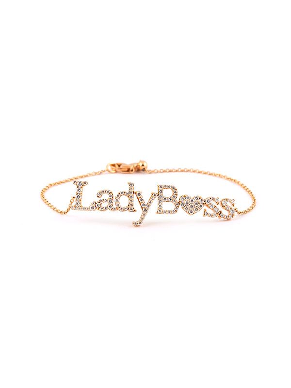 Bracciale in oro rosa 18kt scritta LADY BOSS con diamanti bianchi. Catena a maglia rolò. Chiusura a moschettone.