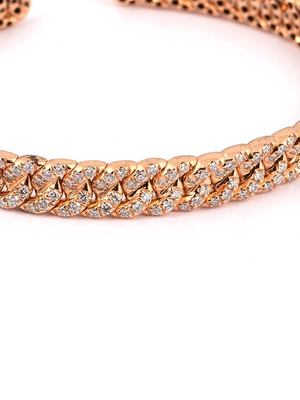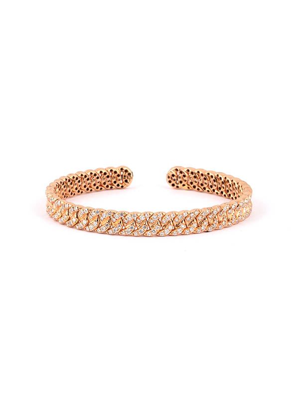 Bracciale rigido groumette in oro bianco rosa 18kt decorato con diamanti sul lato frontale. Semplice ed elegante; il gioiello perfetto da indossare in ogni occasione.