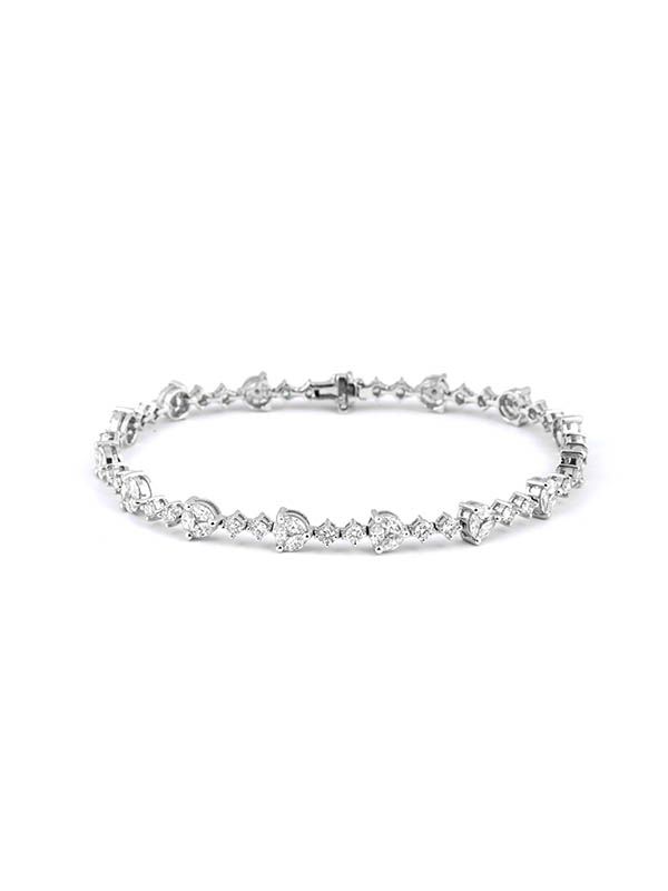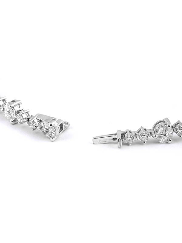 Bracciale tennis fantasia in oro bianco 18kt on diamanti. Il tennis fantasia è semplice ed elegante, il gioiello perfetto da indossare in ogni occasione. Si tratta infatti di un bracciale dal design essenziale, composto da una fila di diamanti taglio brillante e non solo, accuratamente abbinati per colore, qualità e proporzioni. Le pietre sono incassate nella speciale montatura che rende il bracciale speciale per il proprio design, ognuna protetta da quattro griffe. La particolarità di questo bracciale sta anche nella chiusura che scompare letteralmente una volta indossato, così che non si possano distinguere l’inizio e la fine del bracciale: in questo modo assume la forma di un disegno brillante continuo. Previo preventivo concordato con noi, il bracciale tennis può essere realizzato con pietre di diversa caratura e di differente purezza, taglio e colore, gioiello prodotto in Italia. Per qualsiasi necessità o richiesta particolare, o per prenotare un appuntamento in negozio per valutare il prodotto di persona, non esitate a contattarci, siamo a vostra disposizione.