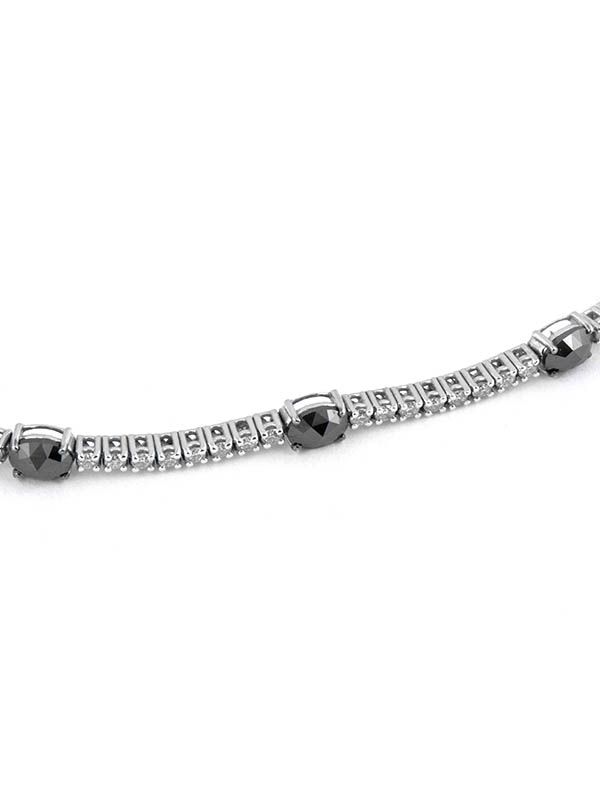 Gioiello firmato Crivelli. Bracciale tennis in oro bianco 18kt con diamanti taglio brillante e diamanti neri taglio rosetta ovale. Il tennis fantasia è semplice ed elegante, il gioiello perfetto da indossare in ogni occasione. Si tratta infatti di un bracciale dal design essenziale, composto da una fila di diamanti taglio brillante e non solo, accuratamente abbinati per colore, qualità e proporzioni. Le pietre sono incassate nella speciale montatura che rende il bracciale speciale per il proprio design, ognuna protetta da quattro griffe. La particolarità di questo bracciale sta anche nella chiusura che scompare letteralmente una volta indossato, così che non si possano distinguere l’inizio e la fine del bracciale: in questo modo assume la forma di un disegno brillante continuo. Previo preventivo concordato con noi, il bracciale tennis può essere realizzato con pietre di diversa caratura e di differente purezza, taglio e colore, gioiello prodotto in Italia. Per qualsiasi necessità o richiesta particolare, o per prenotare un appuntamento in negozio per valutare il prodotto di persona, non esitate a contattarci, siamo a vostra disposizione.