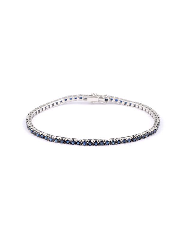 Bracciale tennis in oro bianco 18kt con zaffiri blu. Lunghezza 17cm. Fermaglio di sicurezza.