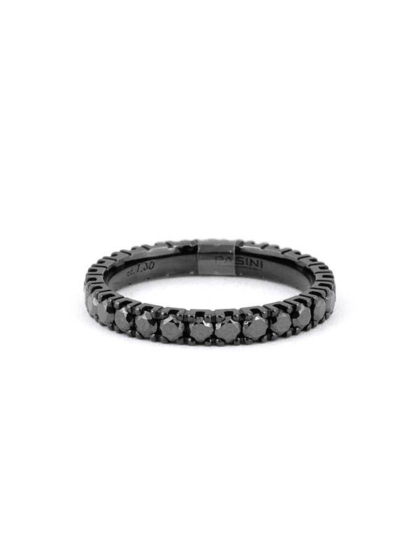 Fedina eternelle in oro bianco rodiato nero con diamanti neri. L'eternelle, o girodito, è un anello composto da pietre poste in tutta la circonferenza dell'anello: la più classica è indubbiamente quella realizzata in oro bianco 750% e diamanti naturali taglio brillante. Il numero delle pietre varia in base alla proporzione e alla misura. La montatura è realizzata a filo, ovvero ogni pietra è incastonata da 4 griffe. Previo preventivo concordato con noi, l'eternelle può essere realizzata con pietre di diversa caratura e di differente purezza, taglio e colore. Per qualsiasi necessità o richiesta particolare, o per prenotare un appuntamento in negozio per valutare il prodotto di persona, non esitate a contattarci, siamo a Vostra disposizione.