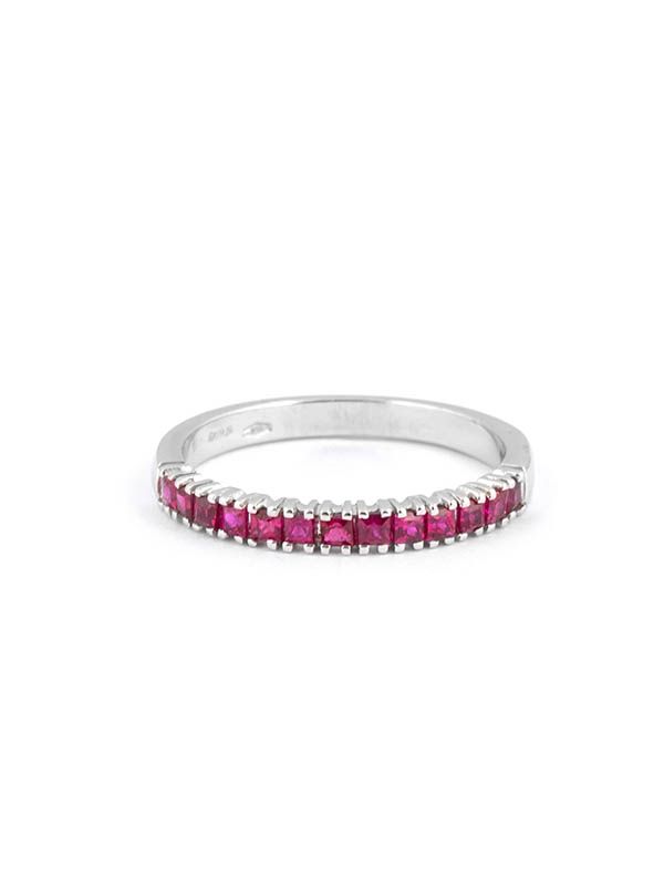 Anellom in oro bianco 18kt con mezzogiro di rubini rossi.