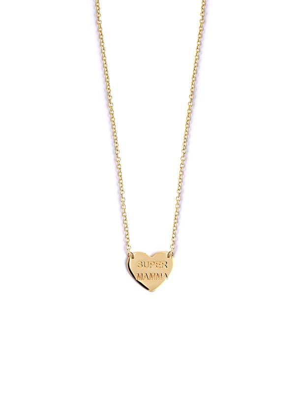 GIROCOLLO IN ORO GIALLO 9KT CUORE IN LASTRA SCRITTA SUPER MAMMA