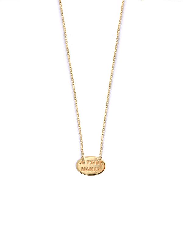 GIROCOLLO IN ORO GIALLO 9KT OVALE IN LASTRA SCRITTA JE T'AIME MAMAN