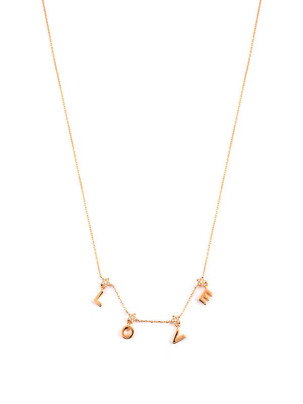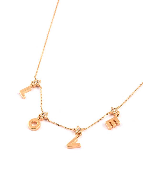 Girocollo in oro rosa 18kt 4 stelle con diamanti e scritta LOVE.