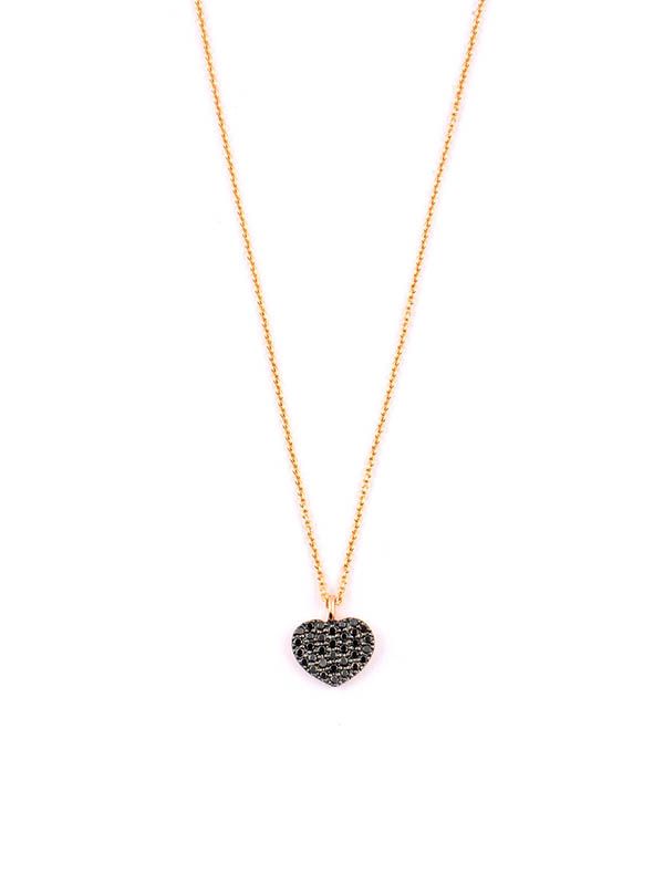 Gioiello firmato Crivelli. Girocollo in oro rosa 18kt con pendente a forma di cuore e pavé di diamanti neri. Catena a maglia rolò con chiusura a moschettone.