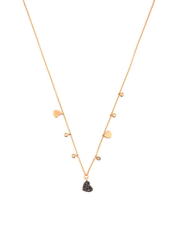 Girocollo in oro rosa 18kt cuore diamanti neri e diamanti.