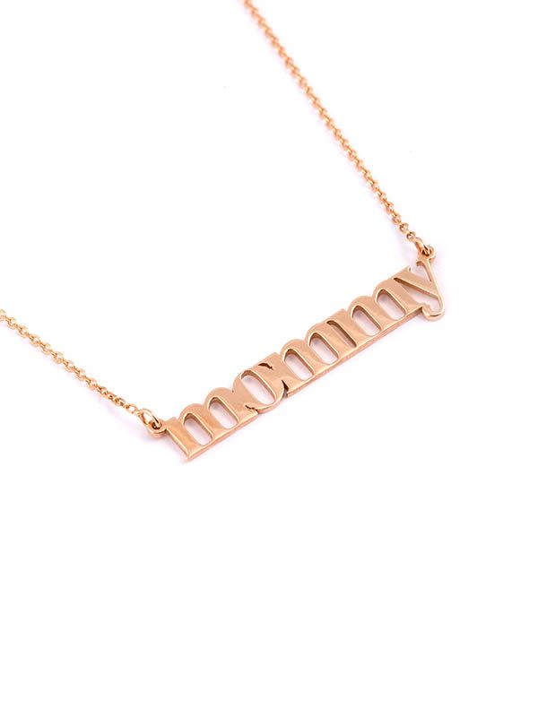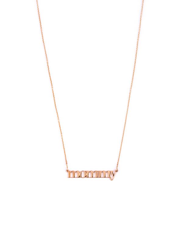 Girocollo in oro rosa 18kt con la scritta MOMMY. Catena a maglia rolò lunghezza 44 cm. Chiusura a moschettone. Secondo anellino di regolazione lunghezza,
