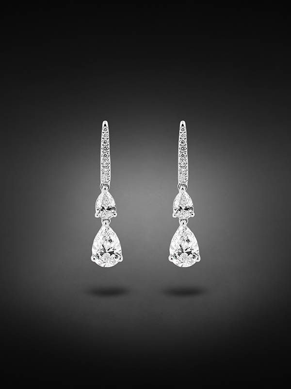 Questi meravigliosi orecchini composti da due diamanti taglio goccia ed altri taglio brillante sono un ottimo compromesso tra decoro, essenzialità e classicità. La raffinata lavorazione esclusivamente manuale è frutto di esperienza nel mondo dell'oreficeria maturata dopo anni di lavoro e generazioni di consigli. Meraviglioso design per questi orecchini, due diamanti taglio goccia creano una proporzione perfetta sospesi sull’anello che veste il lobo decorato da diamantini bianchi, Eleganza ed esclusività per un gioiello che abbraccia classicità, destinato a durare per sempre. Realizzato in diamanti bianchi, prestando la massima attenzione alla scelta delle gemme che lo compongono, stessa tonalità per tutto. Montatura in oro bianco, i diamanti a goccia sono saldamente montati con griffe basse a tre punte piatte. L’esperienza dei maestri orafi permette a questi magnifici orecchini la massima solidità, un gioiello di alta gioielleria portabile ogni giorno. Realizzato in Italia e corredato da certificato di garanzia Pasini.