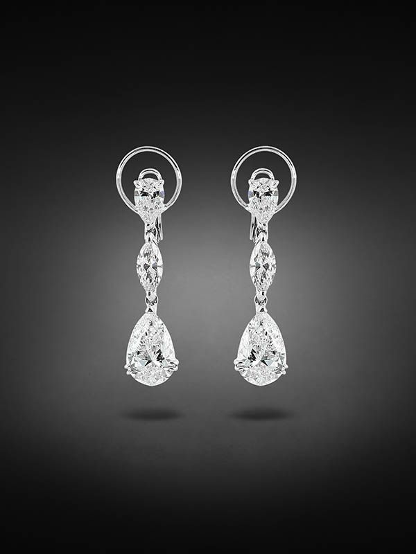 Questi meravigliosi orecchini composti da tre diamanti taglio goccia sono un ottimo compromesso tra classe, minimalismo e classicità. La raffinata lavorazione esclusivamente manuale è frutto di esperienza nel mondo dell'oreficeria maturata dopo anni di lavoro e generazioni di consigli. Meraviglioso design per questi orecchini, tre diamanti taglio goccia creano una proporzione perfetta sospesi uno all’altro. Eleganza ed esclusività per un gioiello che abbraccia classicità, destinato a durare per sempre. Realizzato in diamanti bianchi, prestando la massima attenzione alla scelta delle gemme che lo compongono, stessa tonalità per tutto. Montatura in oro bianco, i diamanti a goccia sono saldamente montati con griffe basse a tre punte piatte. L’esperienza dei maestri orafi permette a questi magnifici orecchini la massima solidità, un gioiello di alta gioielleria portabile ogni giorno. Realizzato in Italia e corredato da certificato di garanzia Pasini.