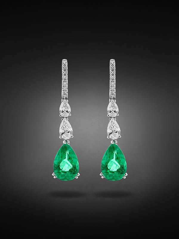 Questi meravigliosi orecchini composti da più diamanti taglio goccia, taglio brillante e preziosi smeraldi sono un ottimo compromesso tra decoro, essenzialità e classicità. La raffinata lavorazione esclusivamente manuale è frutto di esperienza nel mondo dell'oreficeria maturata dopo anni di lavoro e generazioni di consigli. Meraviglioso design per questi orecchini, quattro diamanti taglio goccia creano una proporzione perfetta per accogliere i due splendidi smeraldi taglio goccia di maggiori proporzioni, l’anello che veste il lobo è decorato da diamantini bianchi. Eleganza ed esclusività per un gioiello che abbraccia classicità, destinato a durare per sempre. Realizzato in diamanti bianchi, prestando la massima attenzione alla scelta delle gemme che lo compongono, stessa tonalità per tutta la montatura. Montatura in oro bianco. Massima attenzione alla scelta dei diamanti e alla scelta delle pietre colorate, smeraldi, qualità, colore e luce. L’esperienza dei maestri orafi permette a questi magnifici orecchini la massima solidità, un gioiello di alta gioielleria portabile ogni giorno. Realizzato in Italia e corredato da certificato di garanzia Pasini.