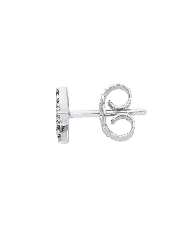 Orecchini lobo in oro bianco 18kt con stella decorata con pavé di diamanti bianchi. Chiusura a farfallina. Dimensione stella 1cm.