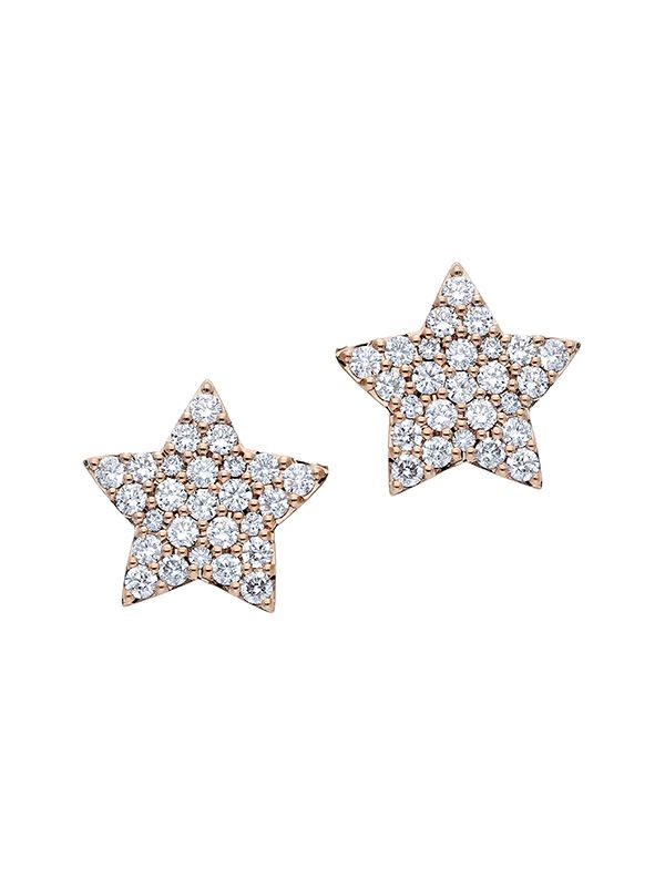 Orecchini lobo in oro rosa 18kt stella decorata con pavé di diamanti bianchi. Larghessa stella 14mm. Chiusura a farfallina.